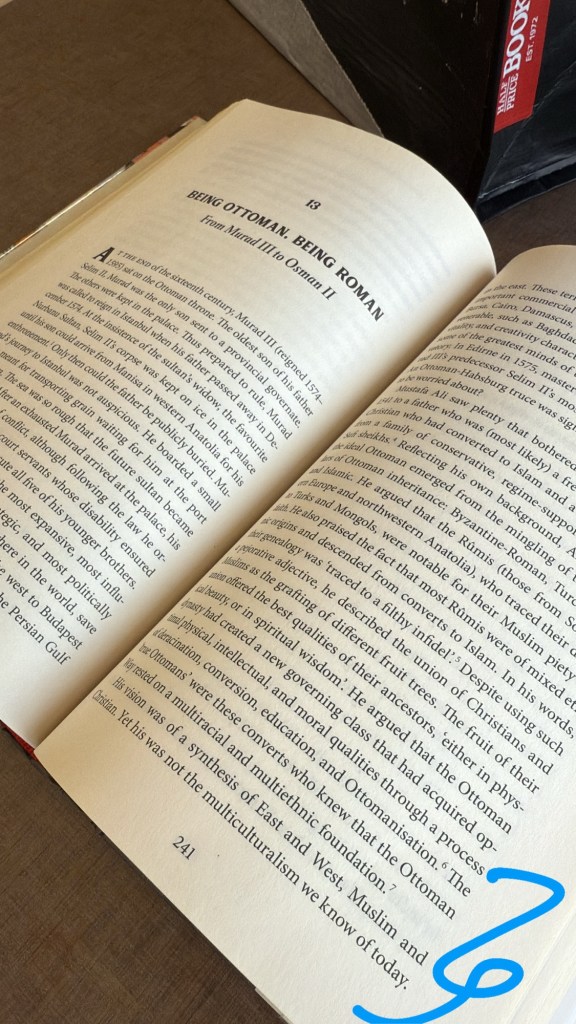 Gambar: Kutipan dari buku sejarah Ottoman (The Ottomans) yang menjelaskan bagaimana identitas Ottoman dibentuk melalui sintesis multietnis dan warisan Romawi. Konsep ini diangkat oleh Mustafa Ali dan para pemikir zamannya.